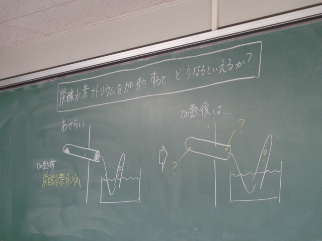 理科の授業で炭酸水素ナトリウムを熱するとどうなるか、について考える授業をやっていました。私が見たときはすでに熱した後だったので、変化した物質が何かを確認していました。理科は実験が楽しいですよね。ただ、知らない物質を扱っていると興味も半減してしまうのですが、今回の炭酸水素ナトリウムは、ベーキングパウダーにも含まれている物質のようで、お菓子作りが好きな生徒たちには少しなじみのあるもので、興味深く取り組んでいたのではないかと思います。結局熱すると、水、二酸化炭素、炭酸ナトリウムの3つに分解されるそうですが、学んだことを思い出しながら、おいしいお菓子を作ってくれたらうれしいです。
